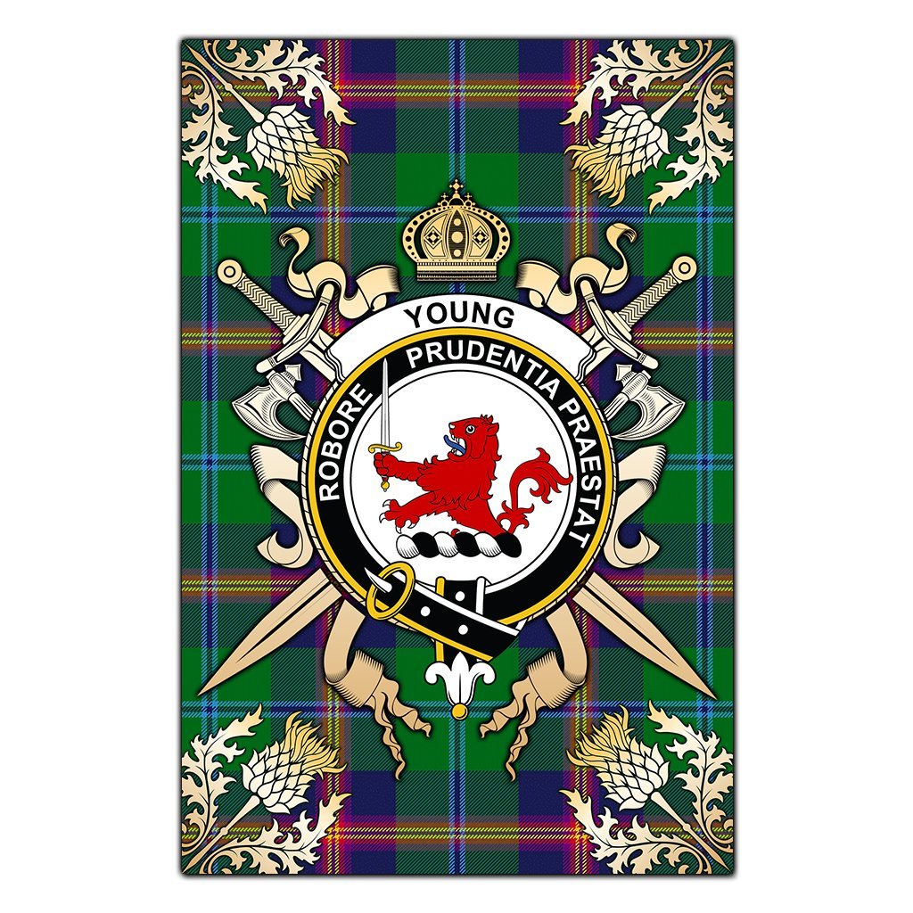 Young Modern Tartan Crest Black Garden Flag - Gold Thistle Style