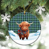 Menzies Green Ancient Tartan Christmas Ceramic Ornament - Highland Cows Snow Style