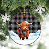 Menzies Black - White Ancient Tartan Christmas Ceramic Ornament - Highland Cows Snow Style
