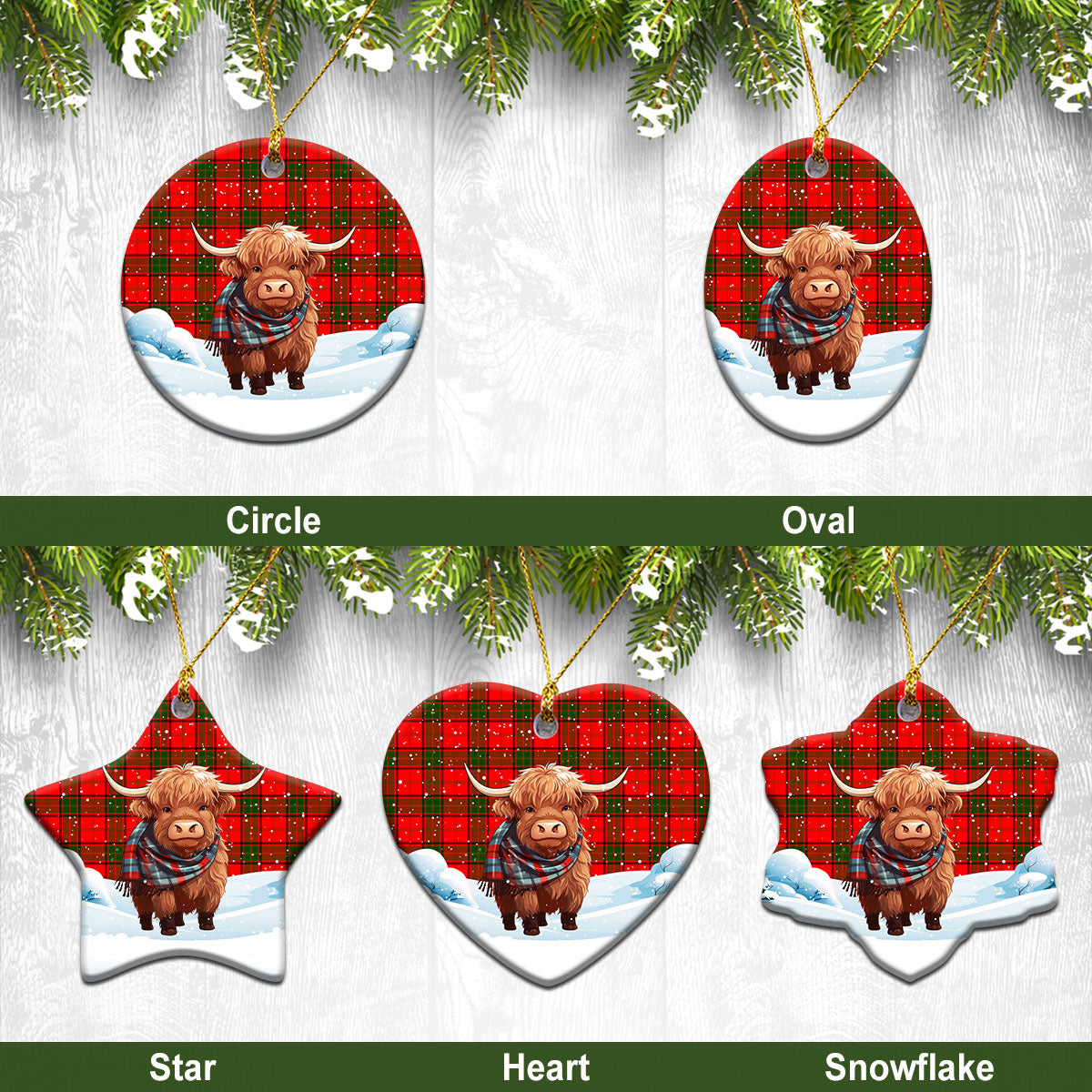 Adair Modern Tartan Christmas Ceramic Ornament - Highland Cows Snow Style
