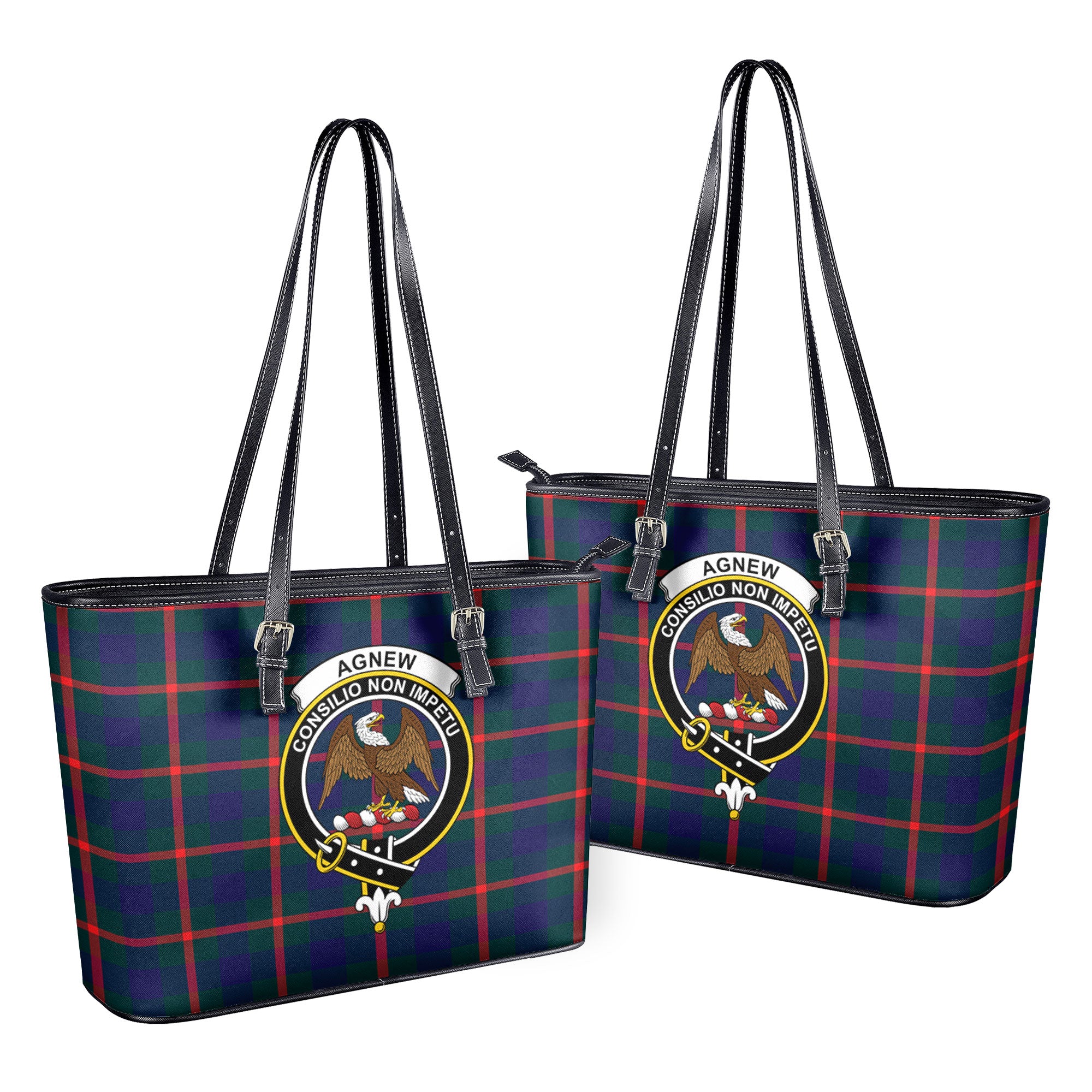 Agnew Modern Tartan Crest Leather Tote Bag