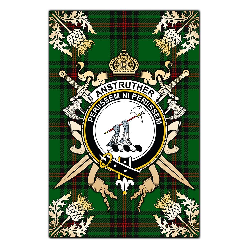 Anstruther Tartan Crest Black Garden Flag - Gold Thistle Style