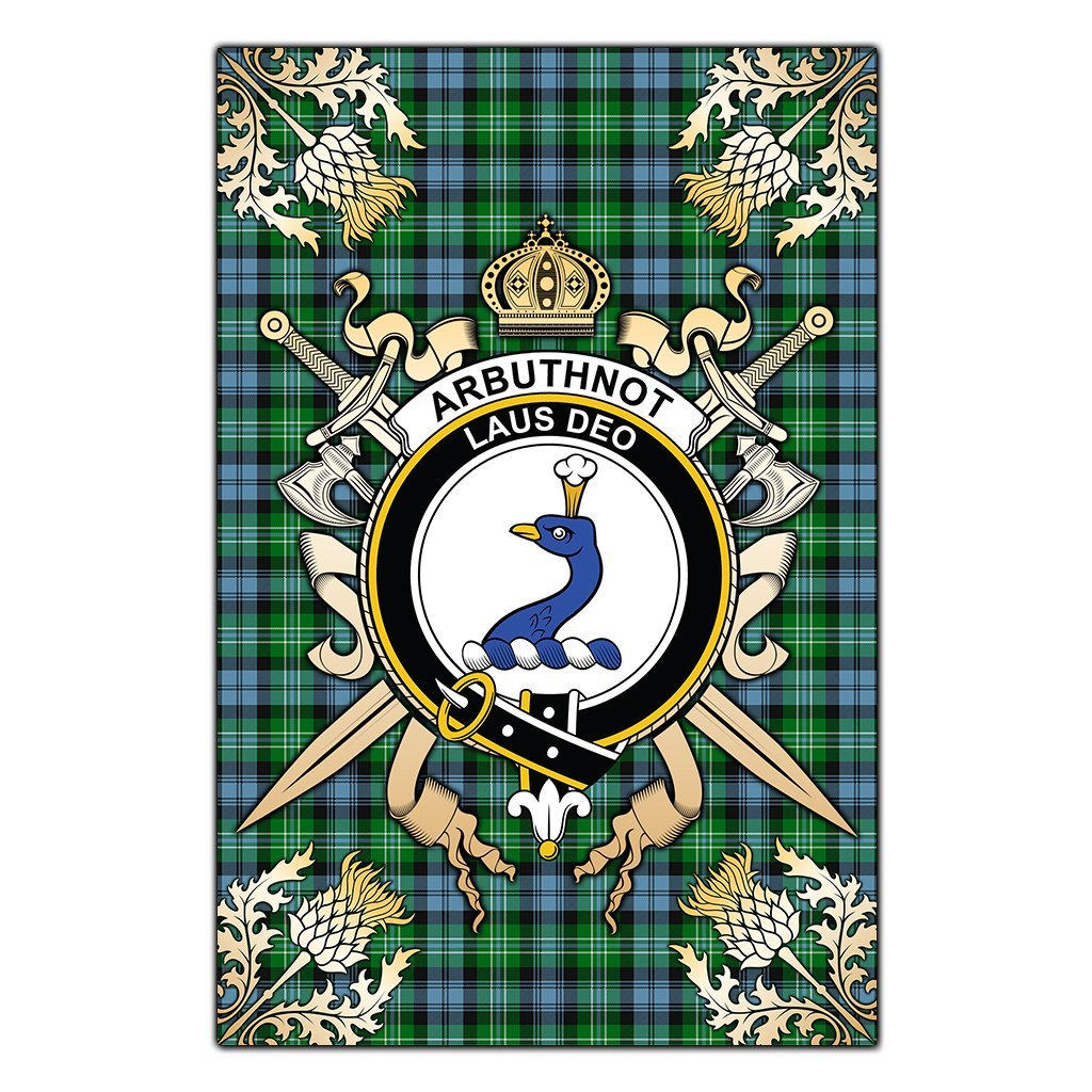 Arbuthnot Ancient Tartan Crest Black Garden Flag - Gold Thistle Style