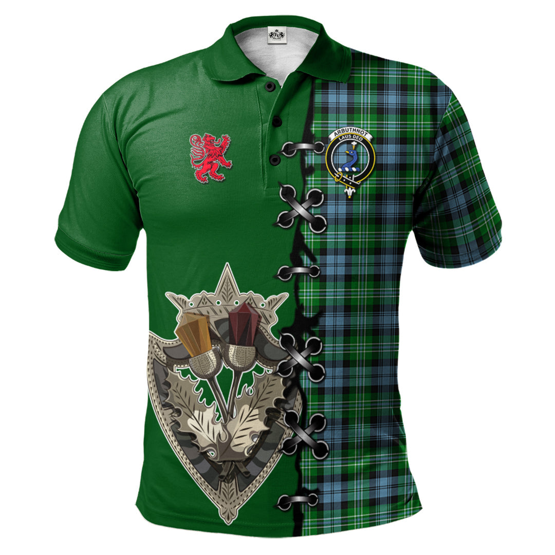 Arbuthnot Ancient Tartan Polo Shirt - Lion Rampant And Celtic Thistle Style