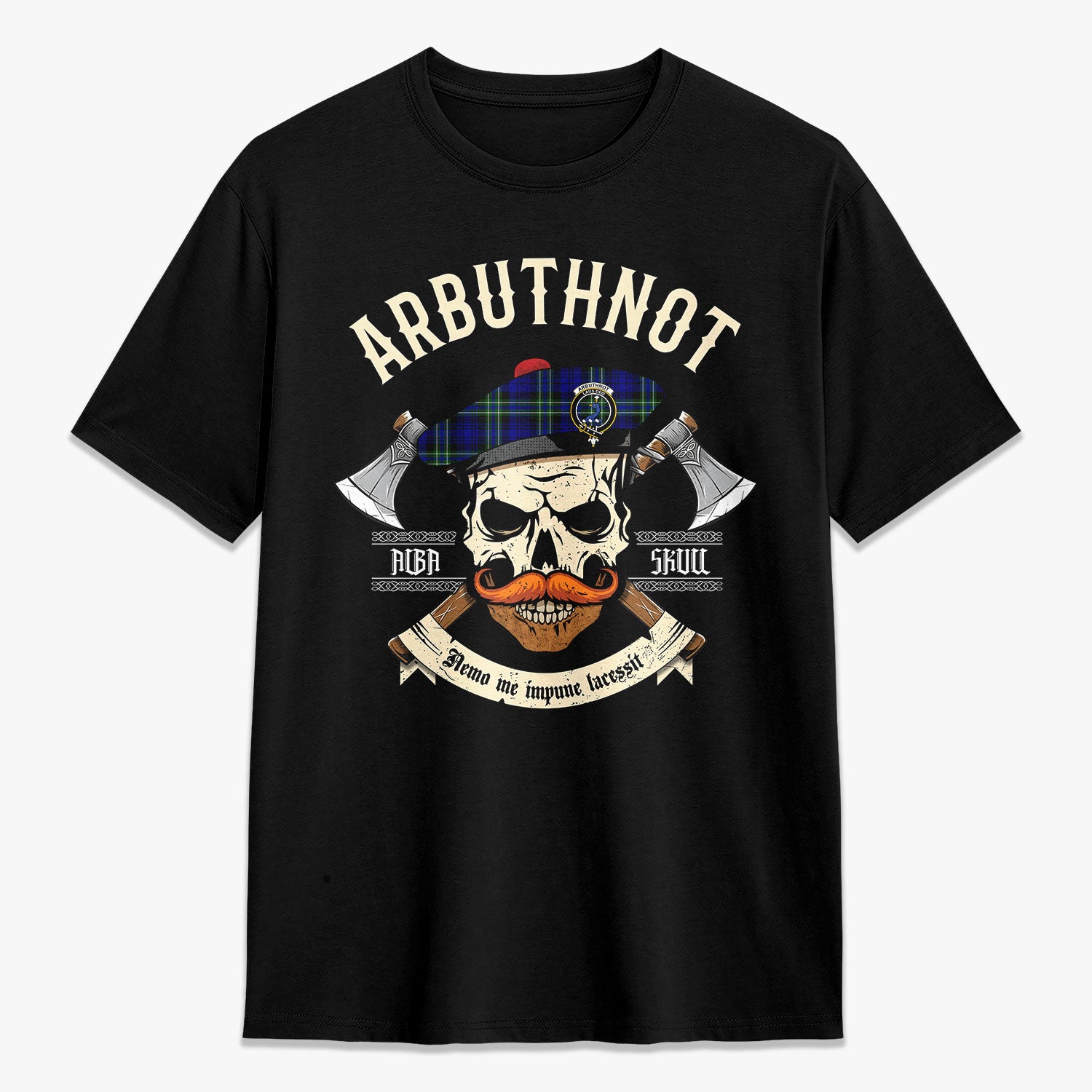 Arbuthnot Modern Tartan Crest 2D T-shirt - Alba Skull Style,