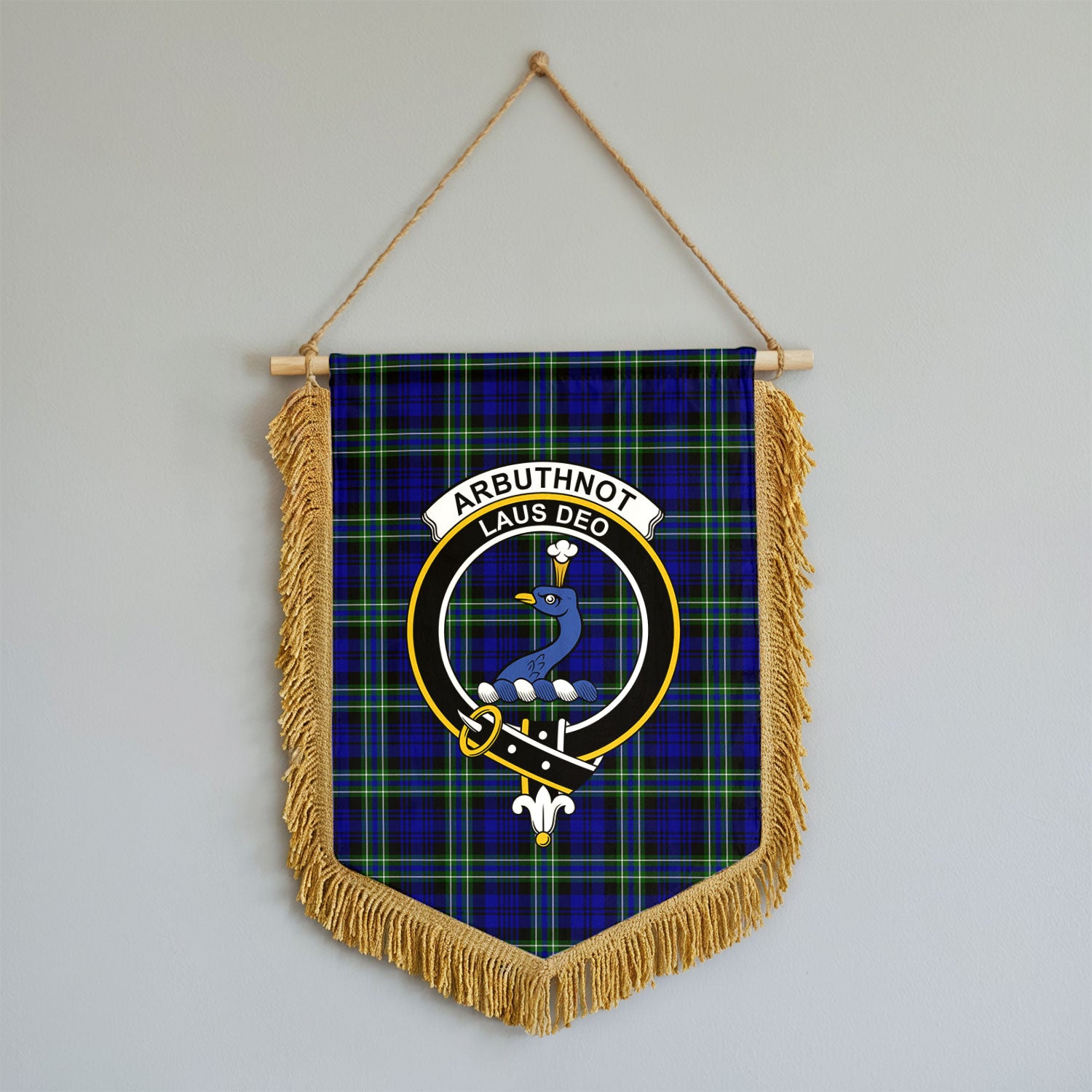 Arbuthnot Modern Tartan Crest Wall Hanging Banner - Wood Pole