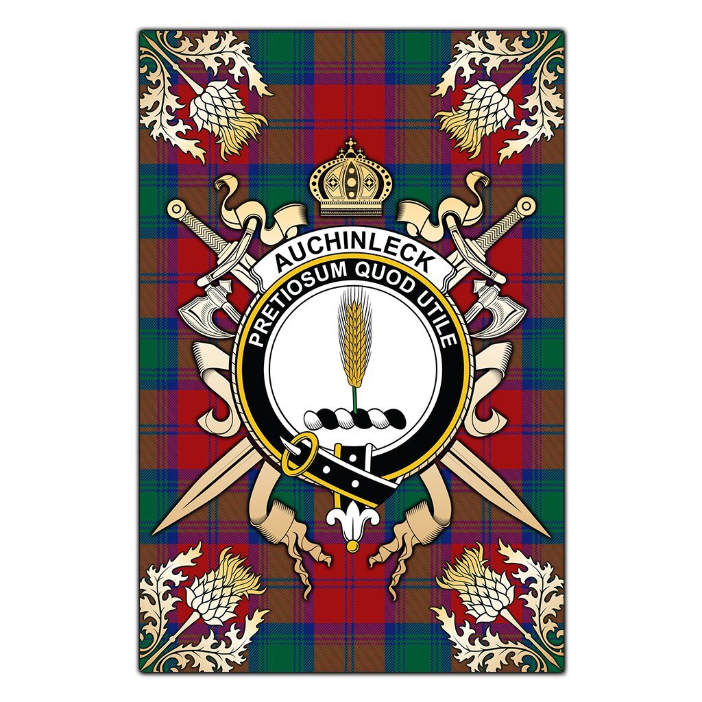 Auchinleck Tartan Crest Black Garden Flag - Gold Thistle Style