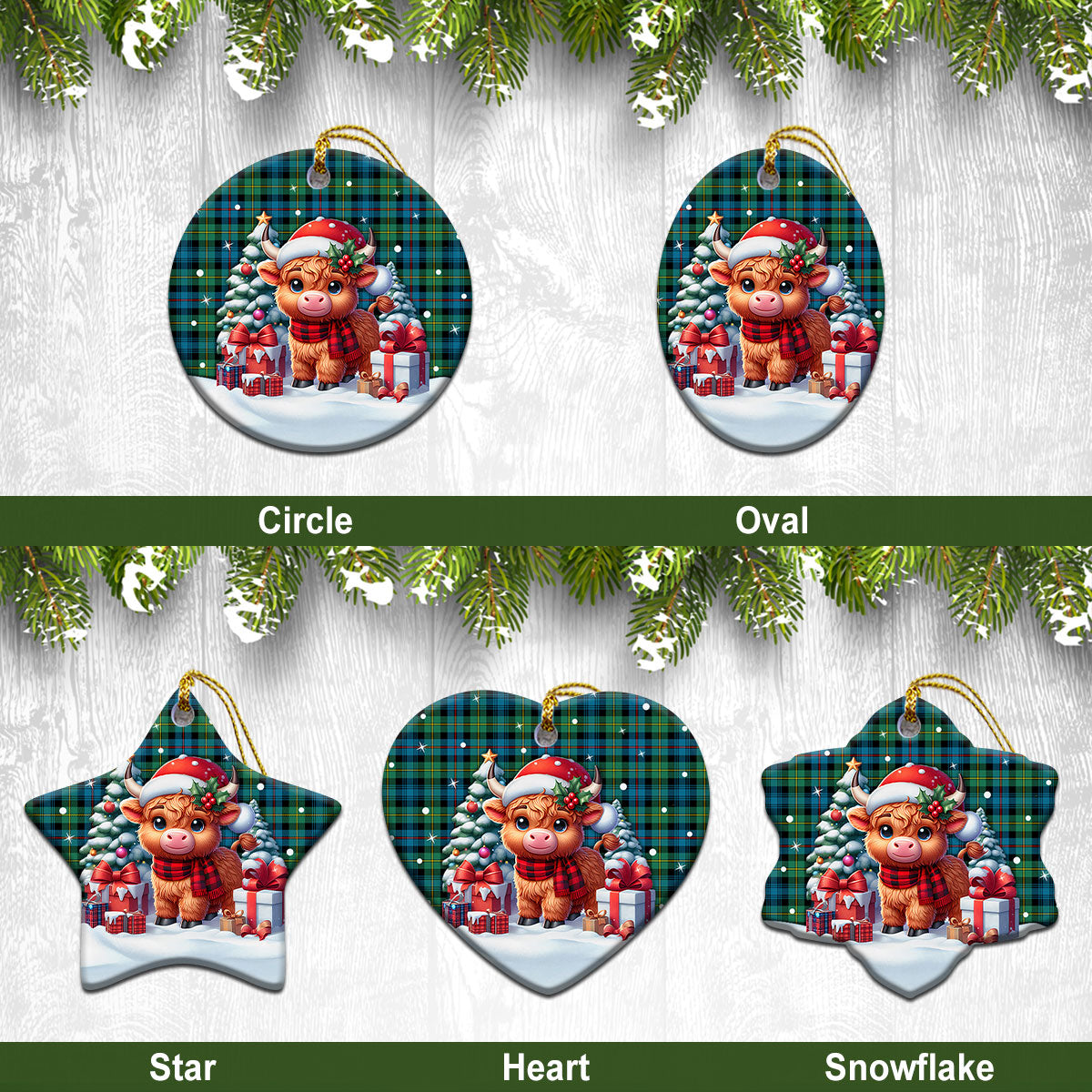 Baillie Ancient Tartan Christmas Ceramic Ornament - Highland Cow Winter Style