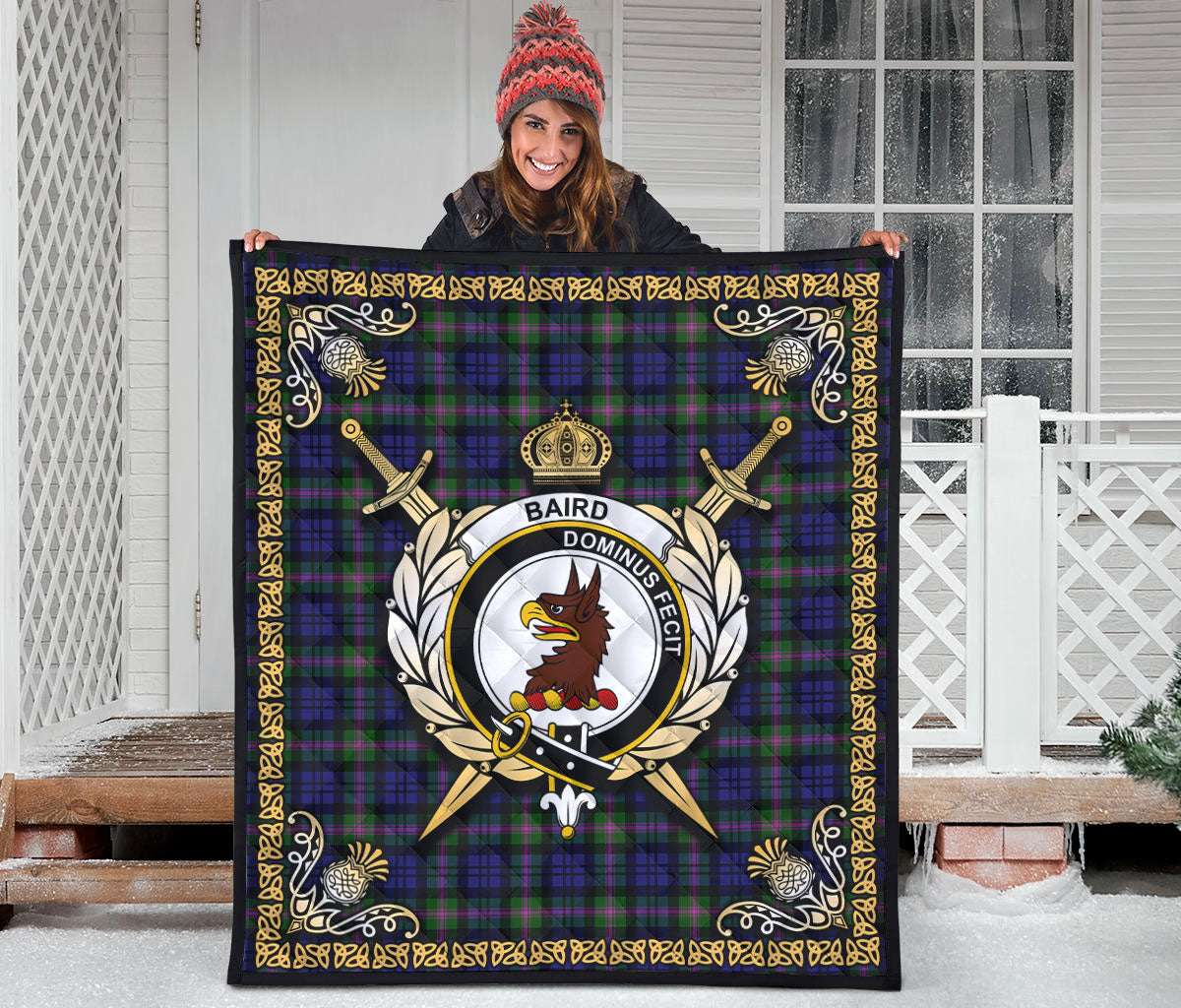 Baird Modern Tartan Crest Premium Quilt - Celtic Thistle Style