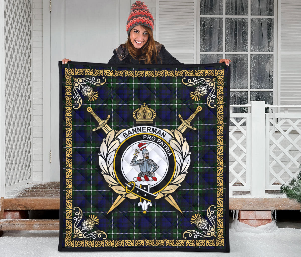 Bannerman Tartan Crest Premium Quilt - Celtic Thistle Style