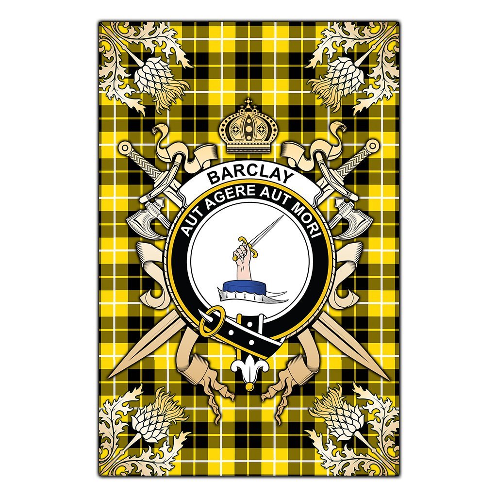 Barclay Dress Modern Tartan Crest Black Garden Flag - Gold Thistle Style