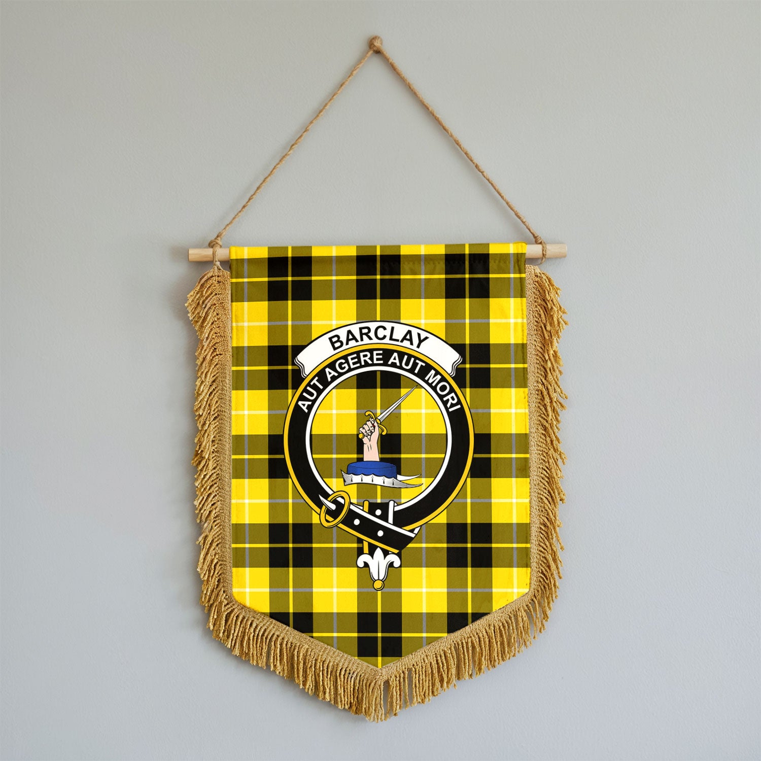 Barclay Dress Modern Tartan Crest Wall Hanging Banner - Wood Pole