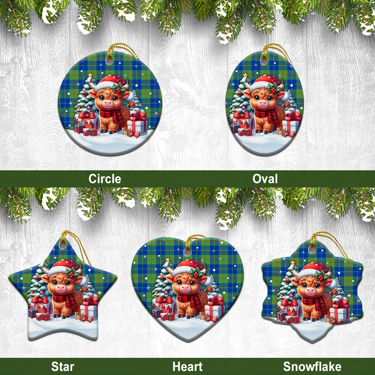 Barclay Hunting Ancient Tartan Christmas Ceramic Ornament - Highland Cow Winter Style