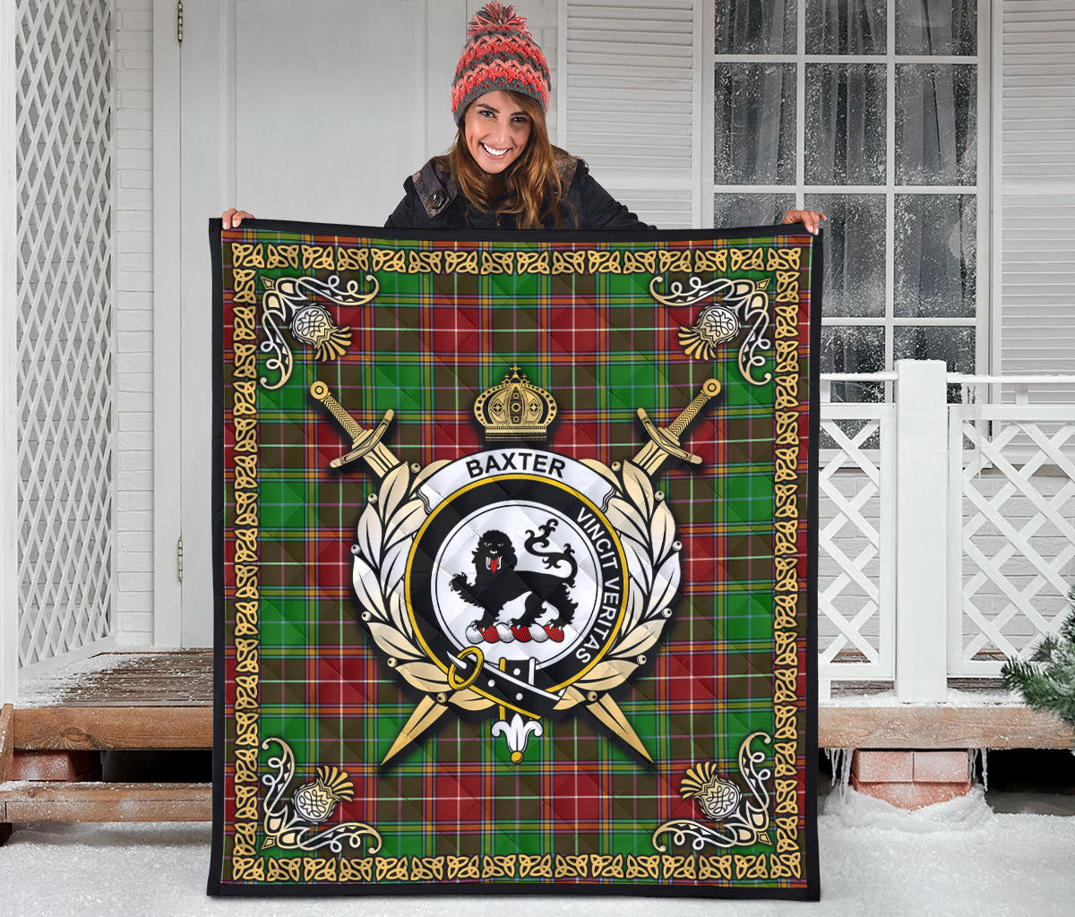 Baxter Modern Tartan Crest Premium Quilt - Celtic Thistle Style