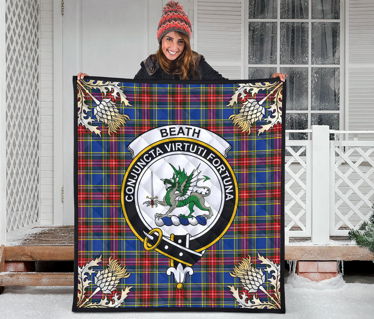 Beath Modern Tartan Crest Premium Quilt - Gold Thistle Style