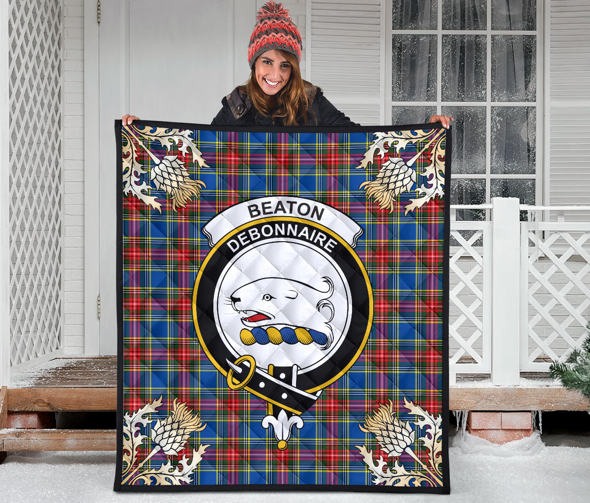 Beaton Tartan Crest Premium Quilt - Gold Thistle Style SP
