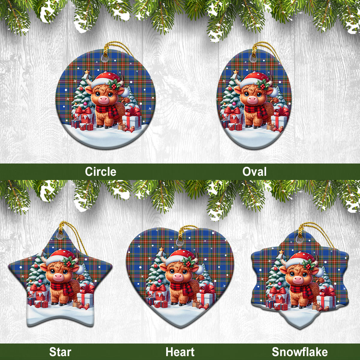 Bethune Ancient Tartan Christmas Ceramic Ornament - Highland Cow Winter Style