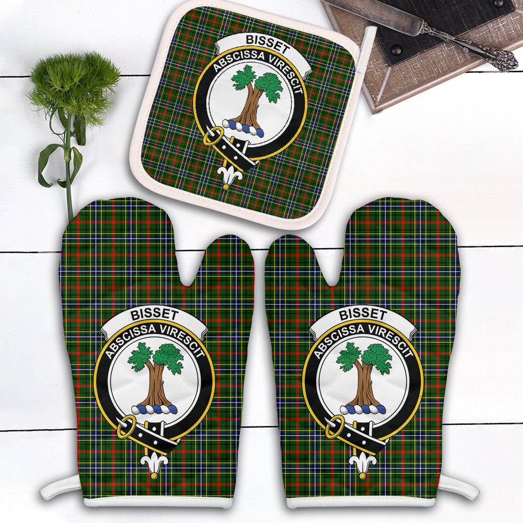 Bisset Tartan Crest Oven Mitt And Pot Holder (2 Oven Mitts + 1 Pot Holder)