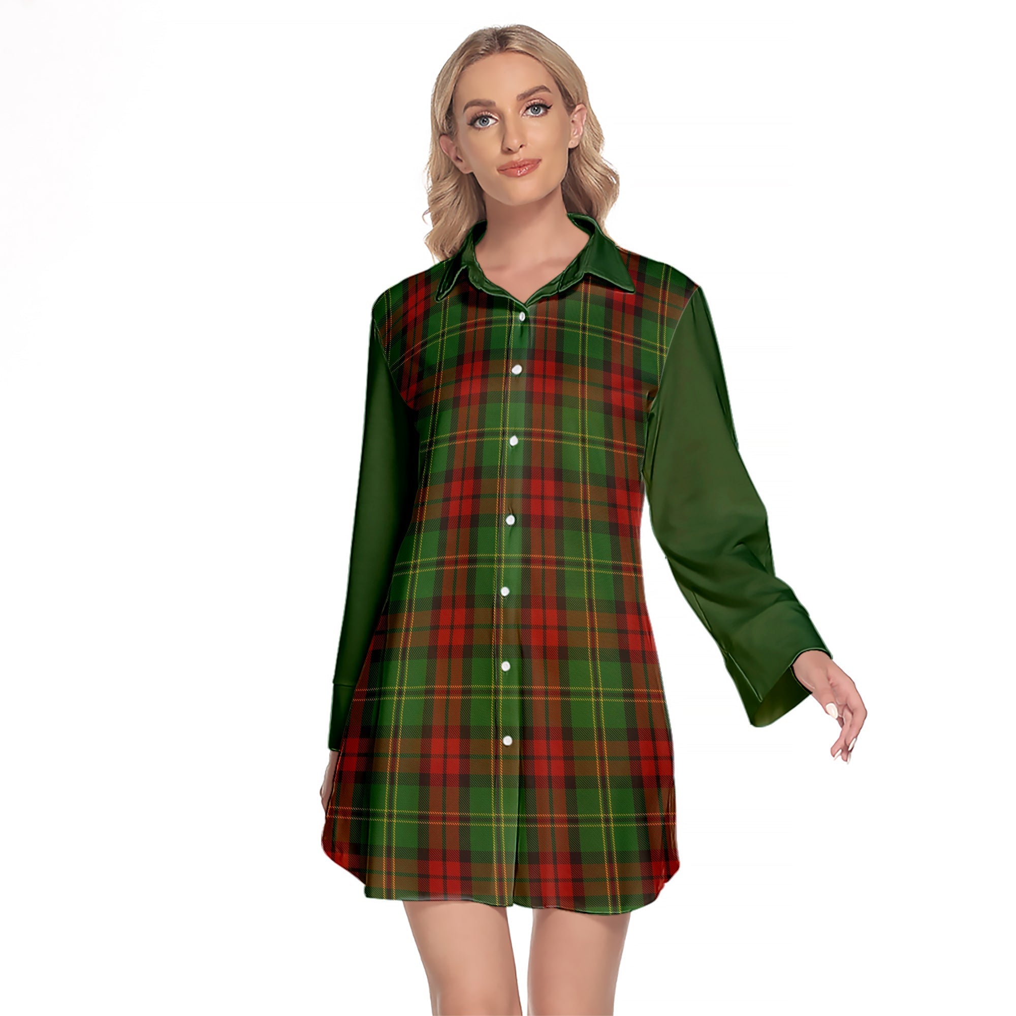 Blackstock Hunting Tartan Women's Lapel Shirt Dress With Long Sleeve