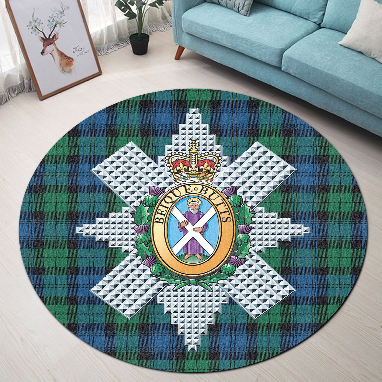 Blackwatch Ancient Tartan Crest Round Rug