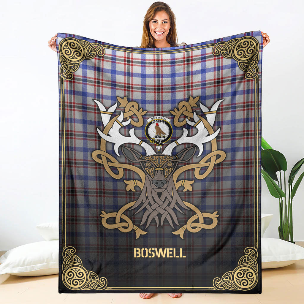 Boswell Modern Tartan Crest Premium Blanket - Celtic Stag style
