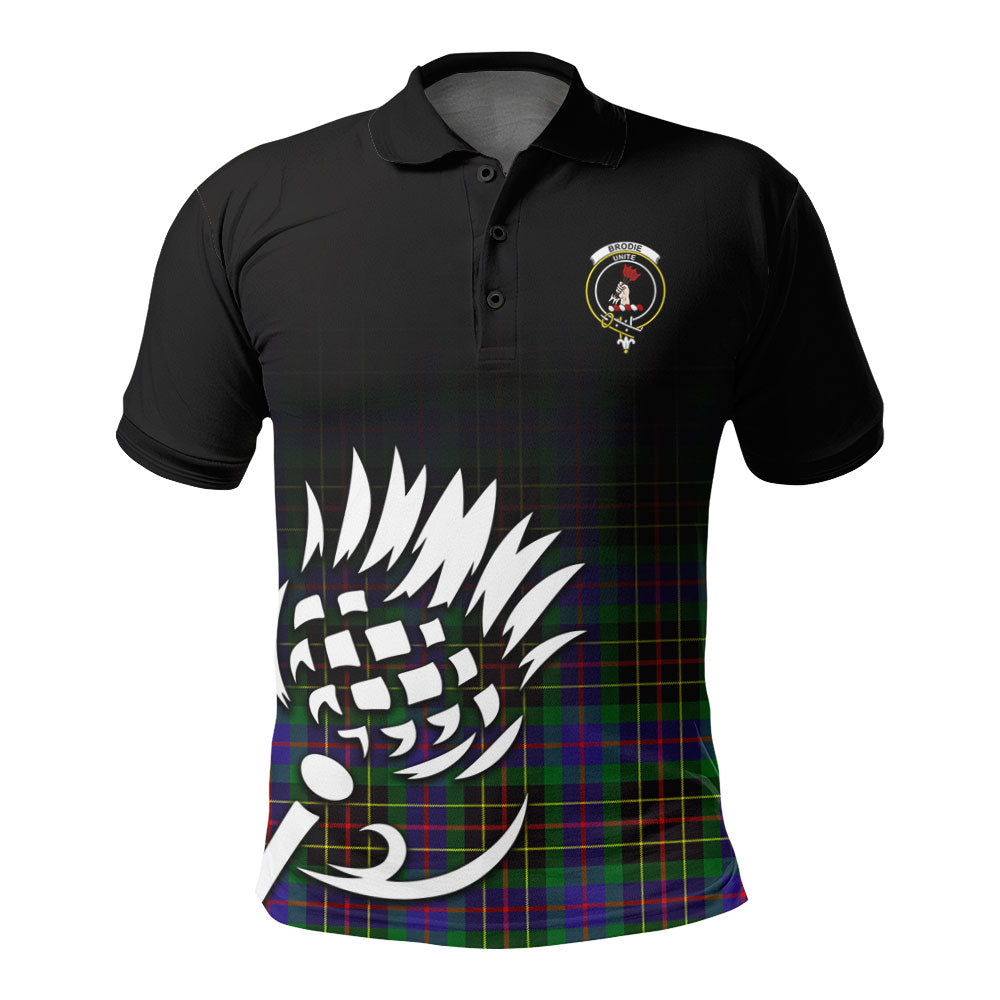 Brodie Hunting Modern Tartan Crest Polo Shirt - Thistle Black Style