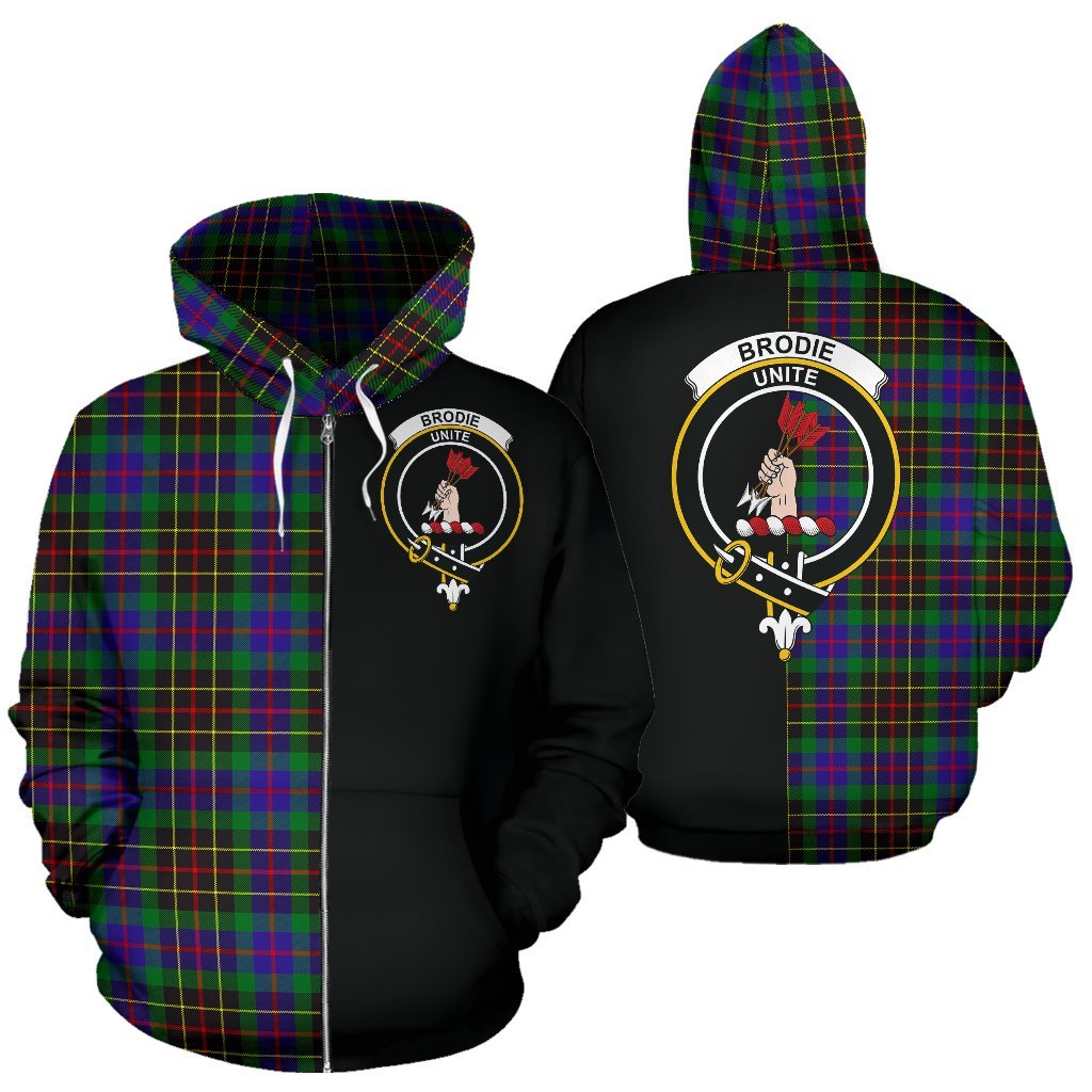 Brodie Hunting Modern Tartan Crest Zipper Hoodie - Half Of Me Style