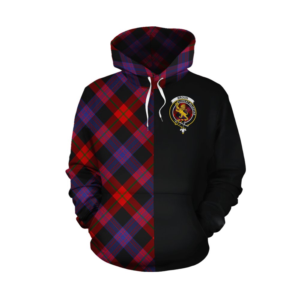 Broun Modern Tartan Hoodie Half of Me - Cross Style