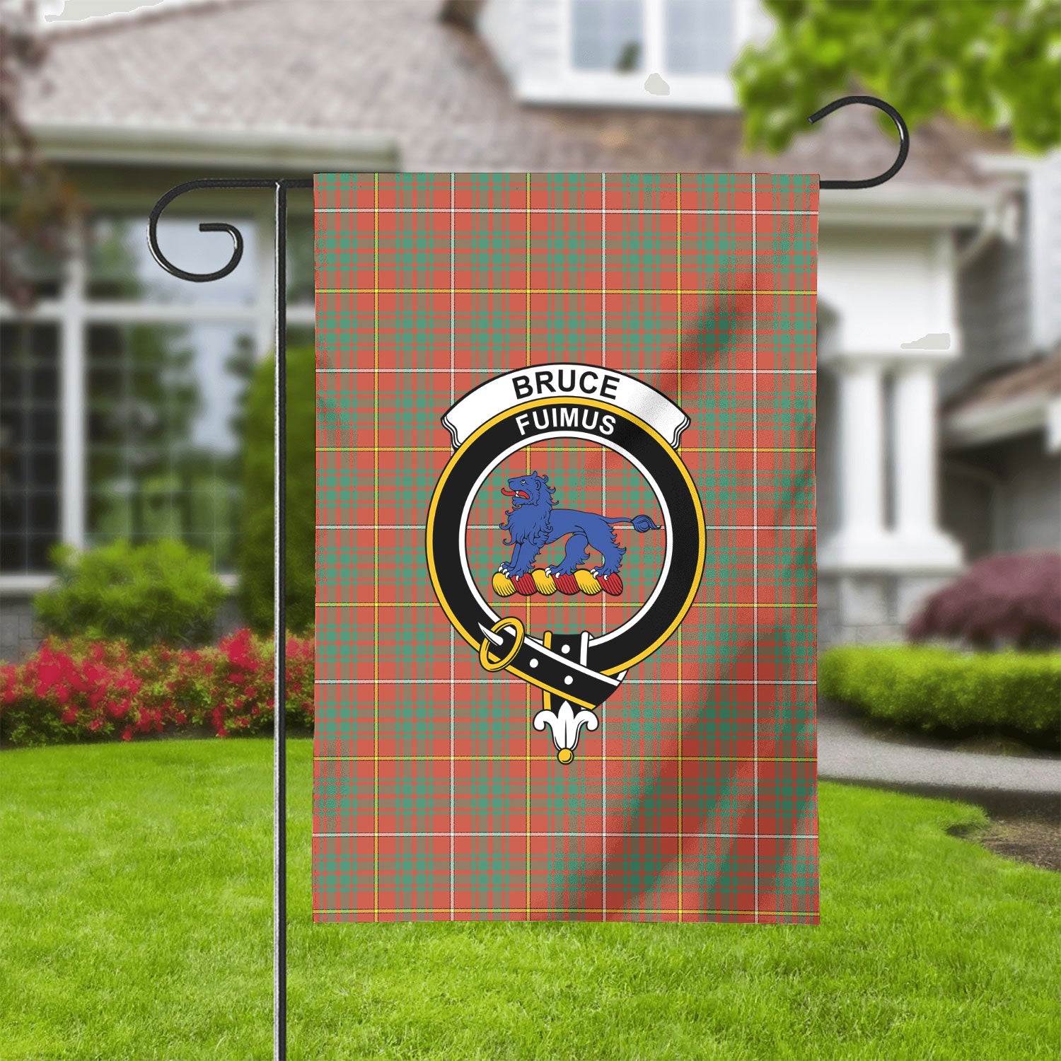 Bruce Ancient Tartan Crest Garden Flag