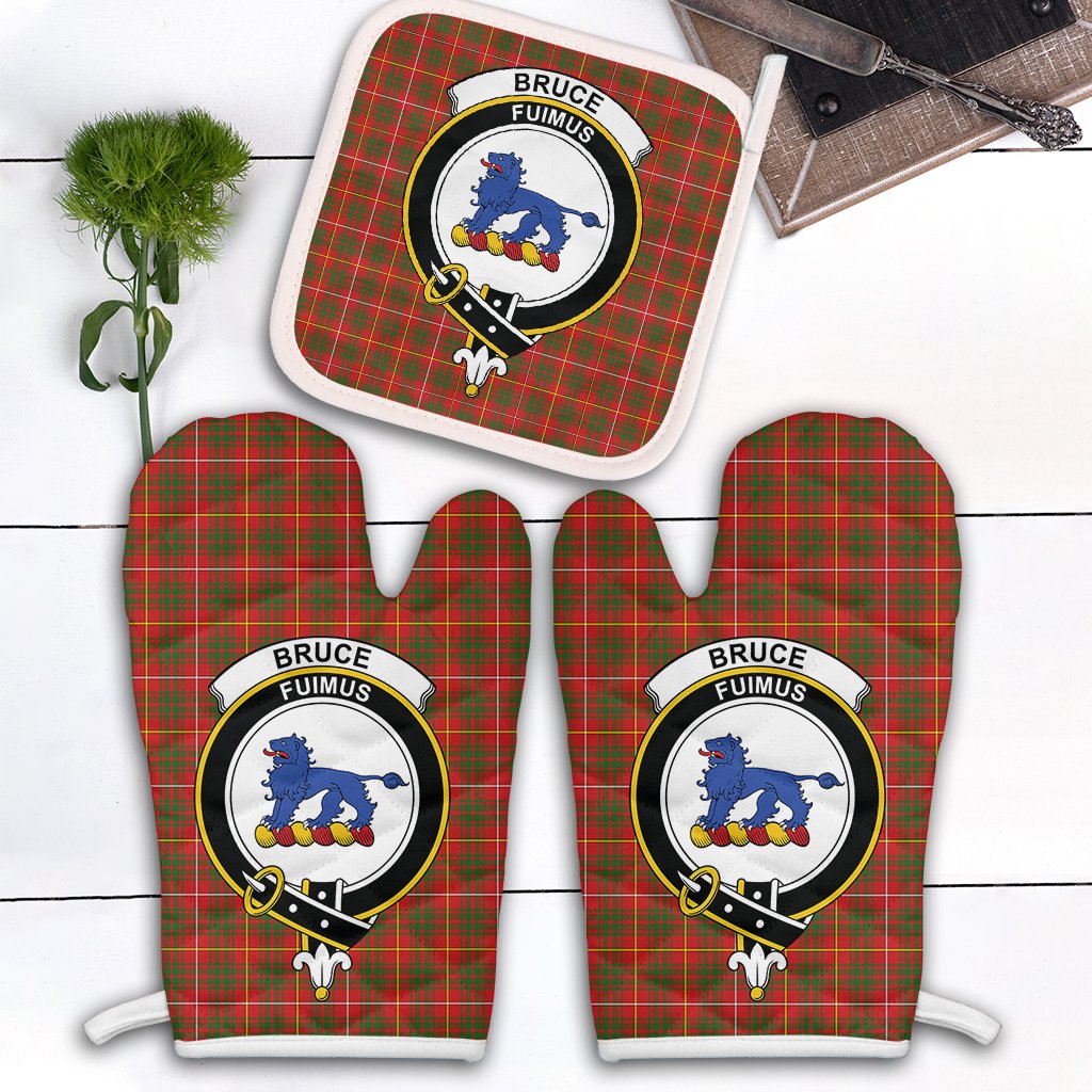 Bruce Modern Tartan Crest Oven Mitt And Pot Holder (2 Oven Mitts + 1 Pot Holder)