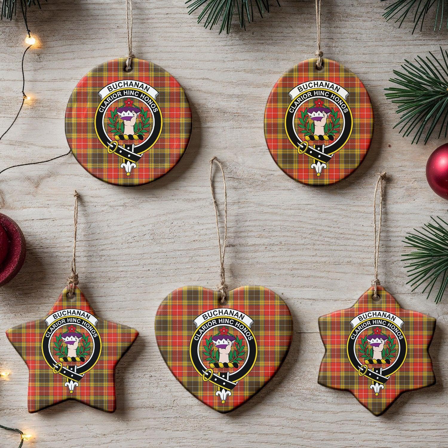 Buchanan Old Set Weathered Tartan Crest Christmas Ceramic Ornament