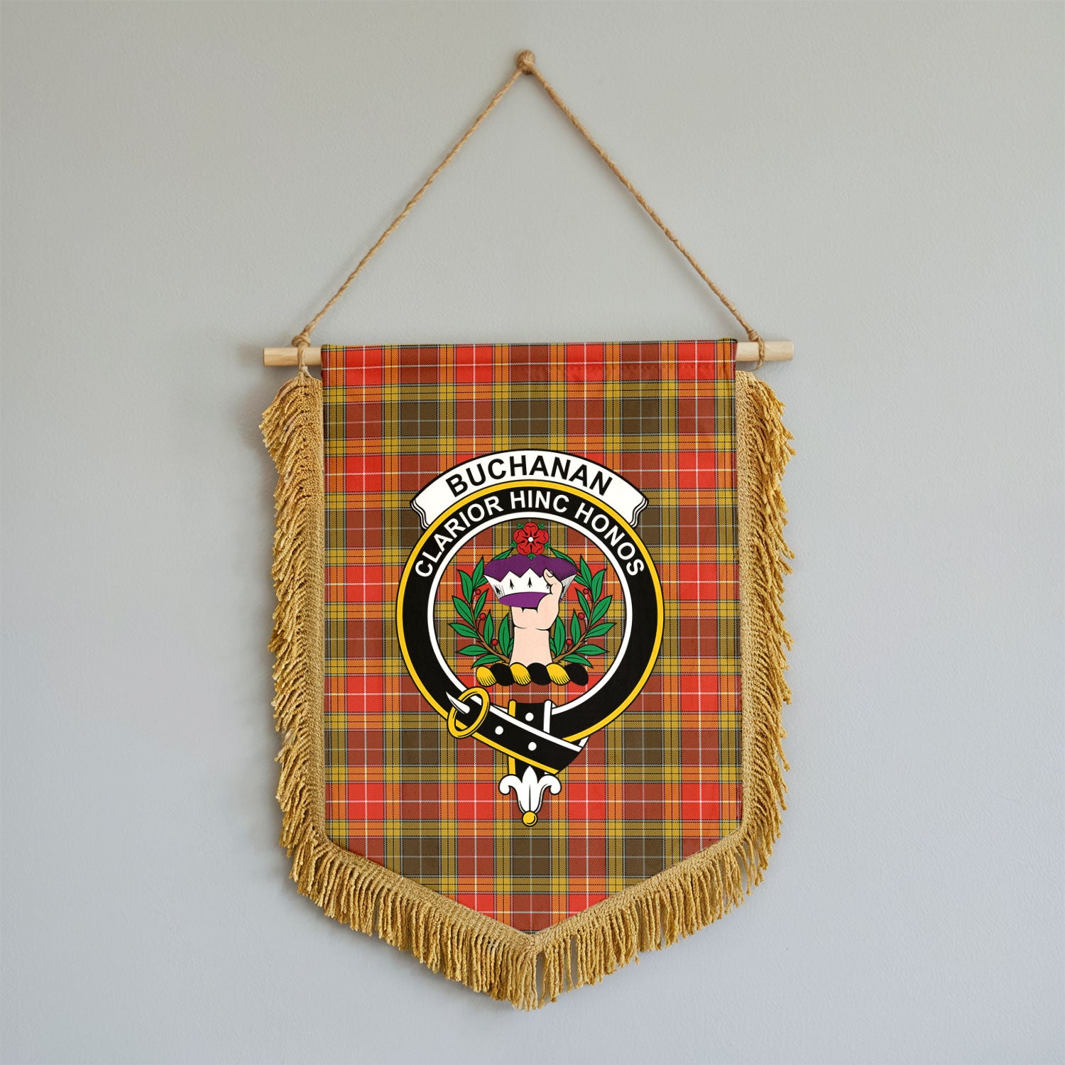 Buchanan Old Set Weathered Tartan Crest Wall Hanging Banner - Wood Pole