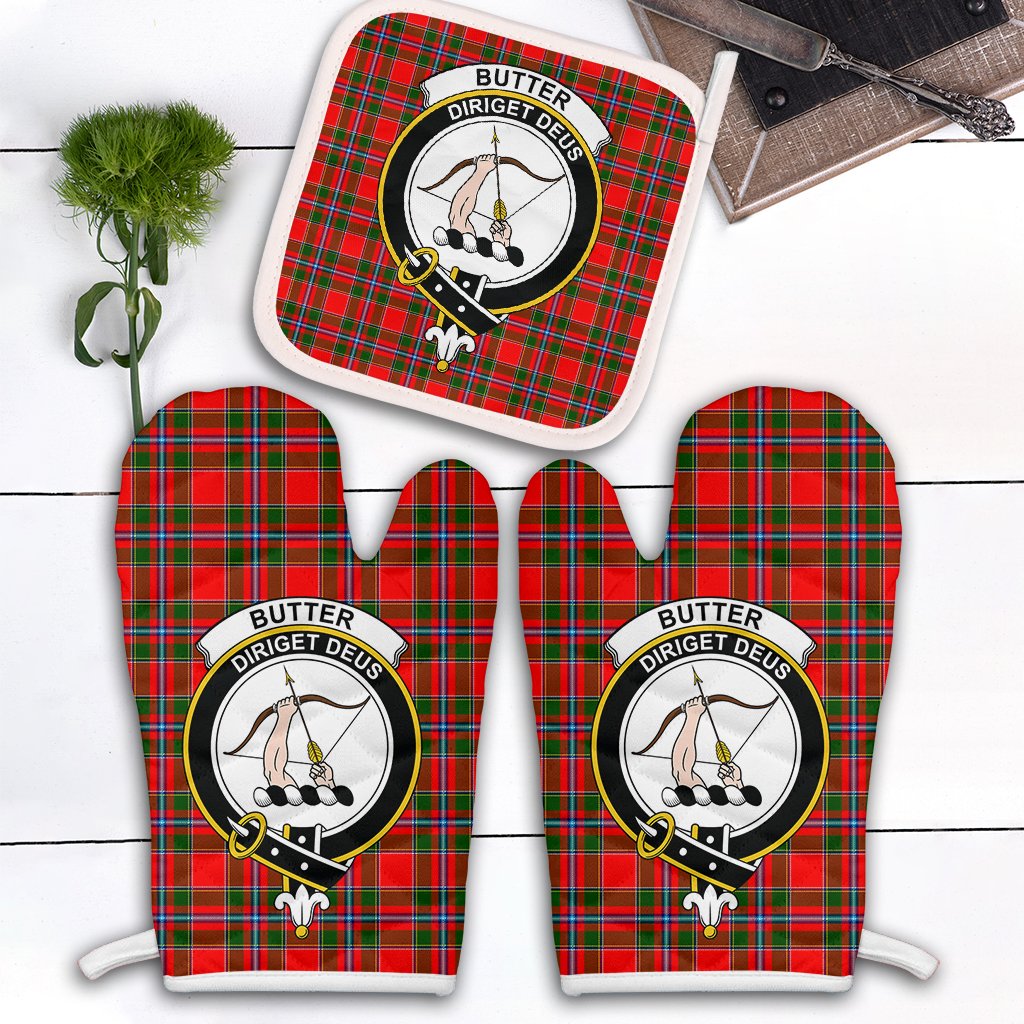 Butter Tartan Crest Oven Mitt And Pot Holder (2 Oven Mitts + 1 Pot Holder)