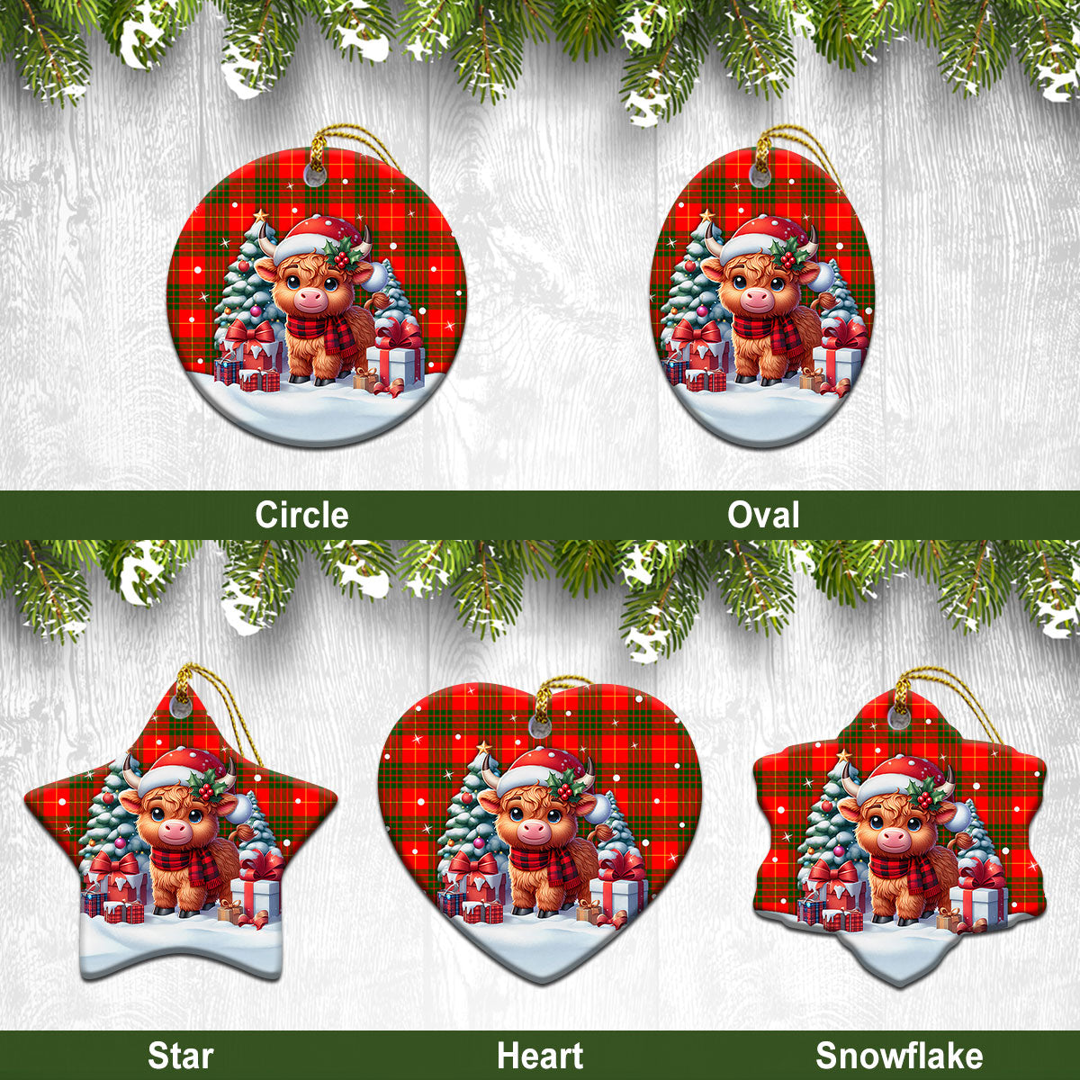 Cameron Modern Tartan Christmas Ceramic Ornament - Highland Cow Winter Style