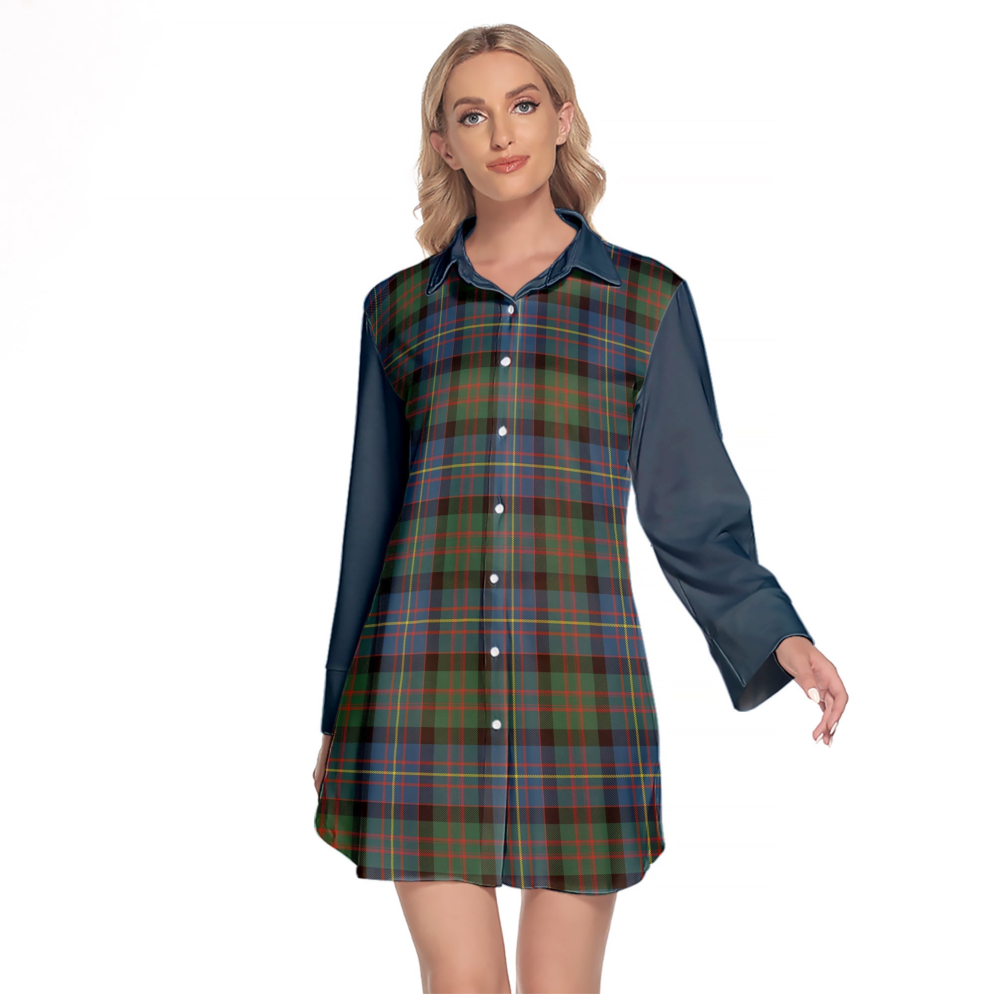 Cameron Of Erracht Ancient Tartan Women's Lapel Shirt Dress With Long Sleeve