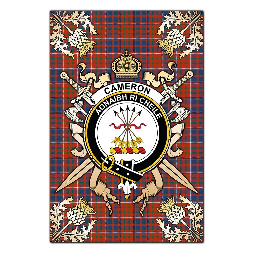Cameron Of Lochiel Ancient Tartan Crest Black Garden Flag - Gold Thistle Style