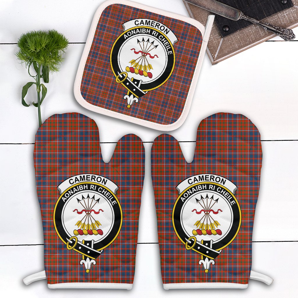 Cameron Of Lochiel Ancient Tartan Crest Oven Mitt And Pot Holder (2 Oven Mitts + 1 Pot Holder)