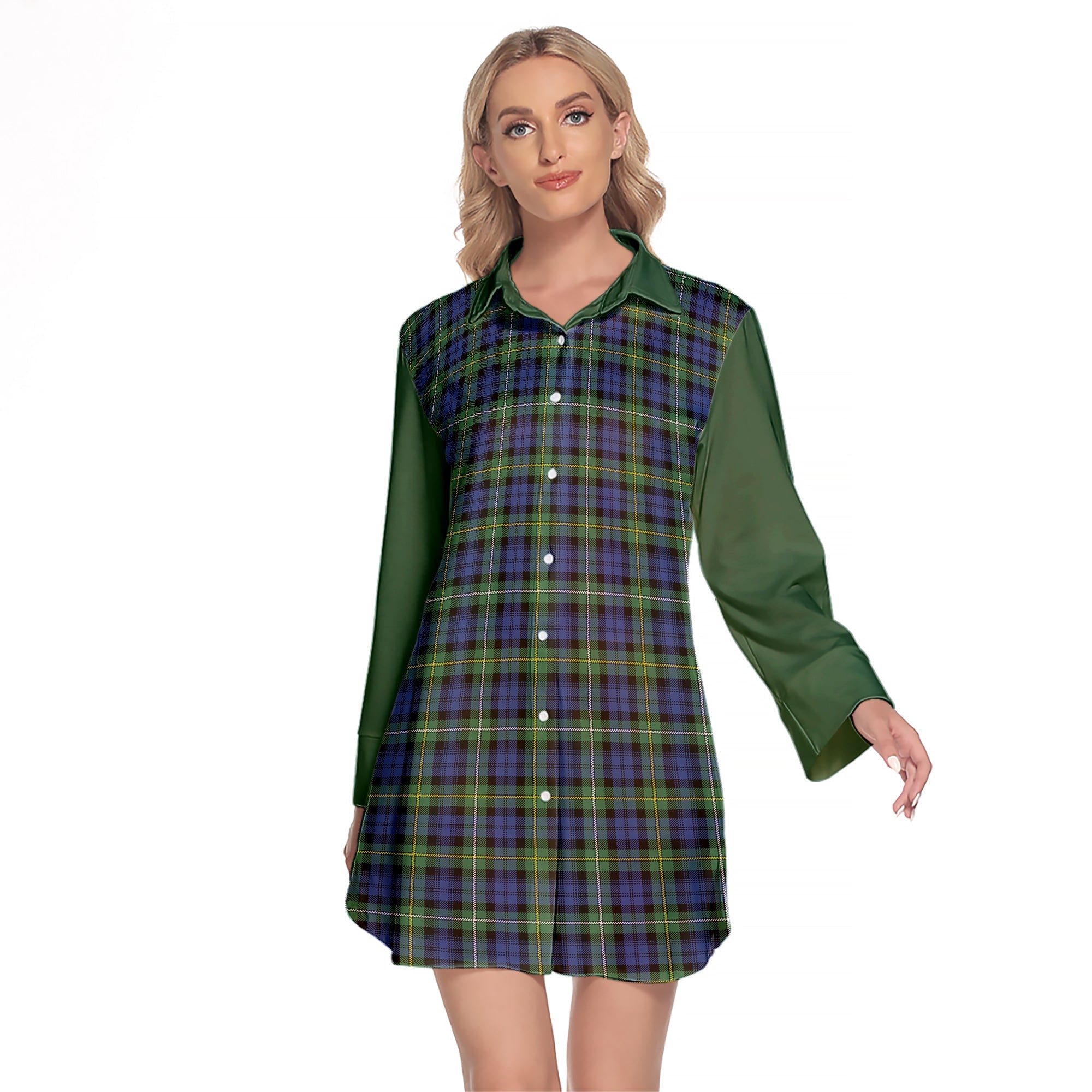 Campbell Argyll Ancient Tartan Women's Lapel Shirt Dress With Long Sleeve