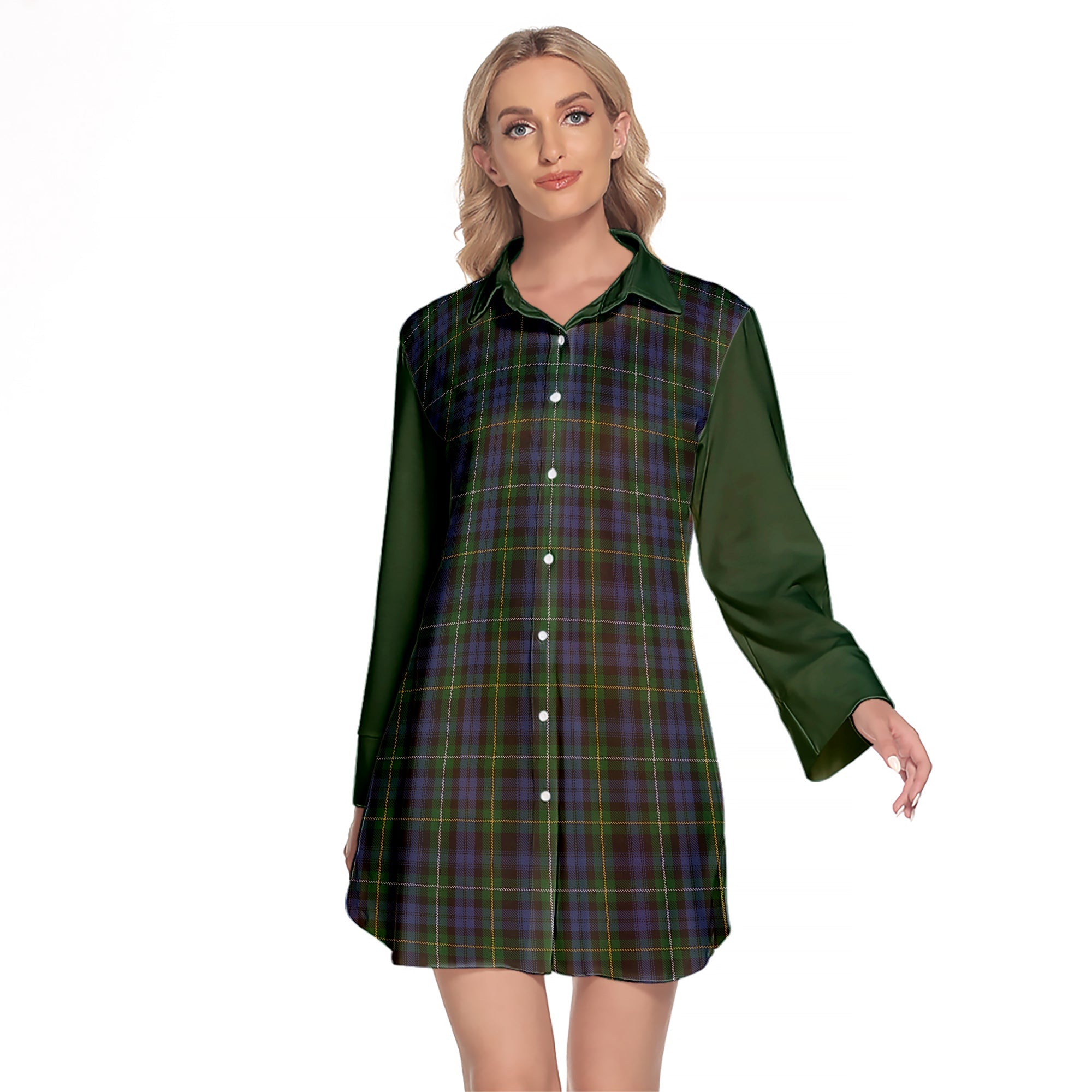 Campbell Of Argyll 01 Tartan Women's Lapel Shirt Dress With Long Sleeve