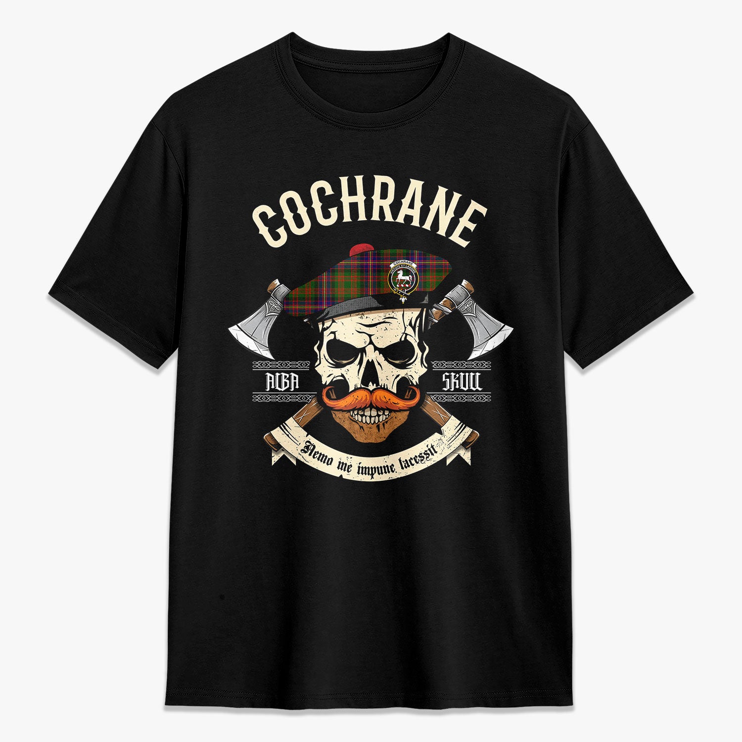 Cochrane Modern Tartan Crest 2D T-shirt - Alba Skull Style,