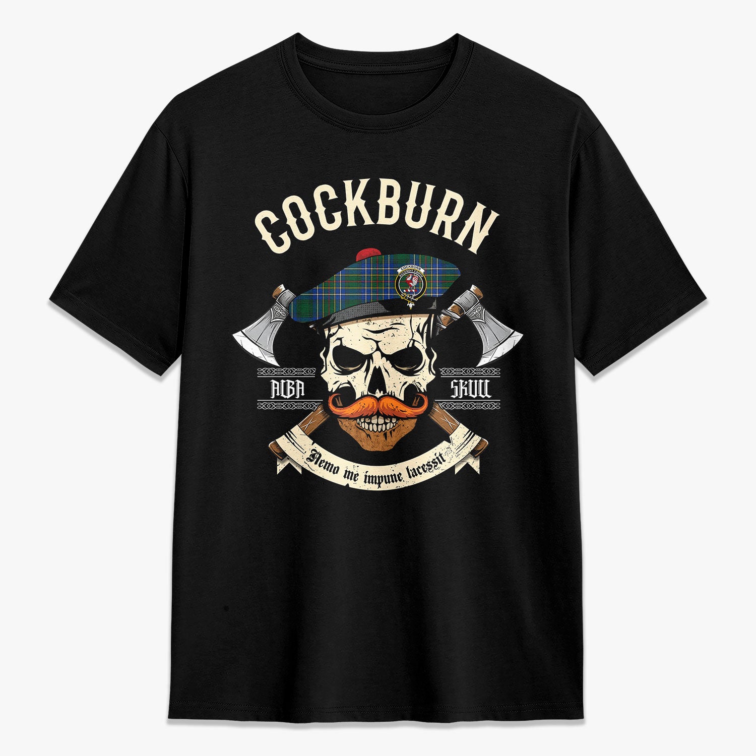 Cockburn Ancient Tartan Crest 2D T-shirt - Alba Skull Style,