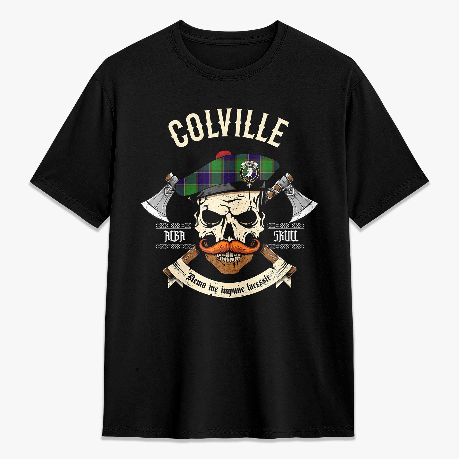 Colville Tartan Crest 2D T-shirt - Alba Skull Style,