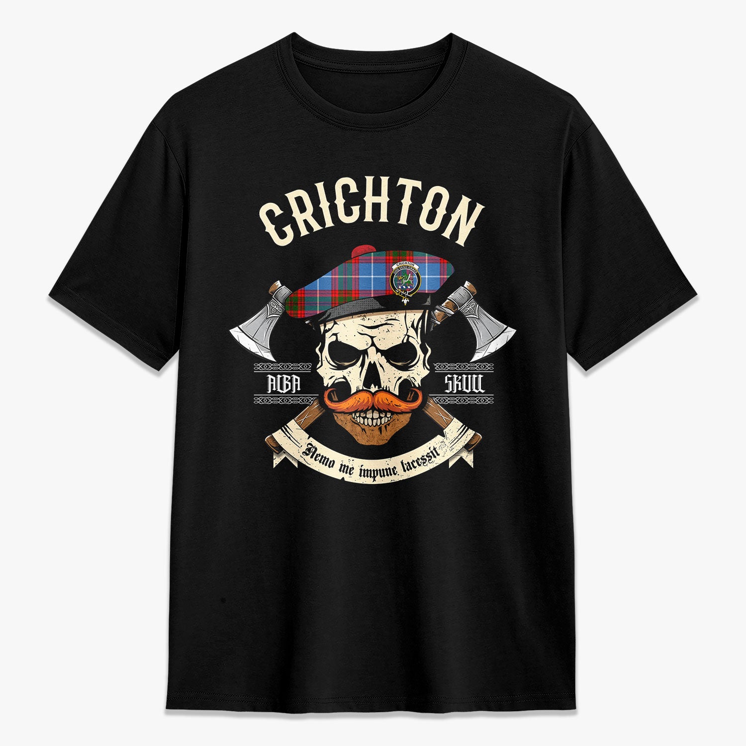 Crichton Tartan Crest 2D T-shirt - Alba Skull Style,