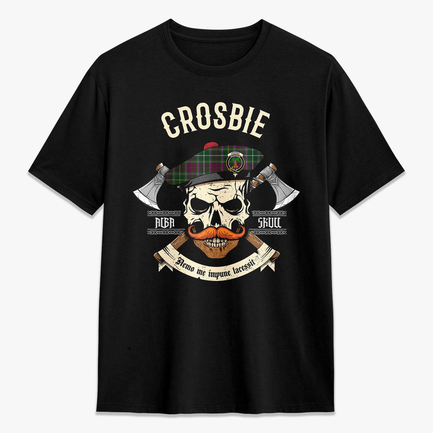Crosbie Tartan Crest 2D T-shirt - Alba Skull Style,
