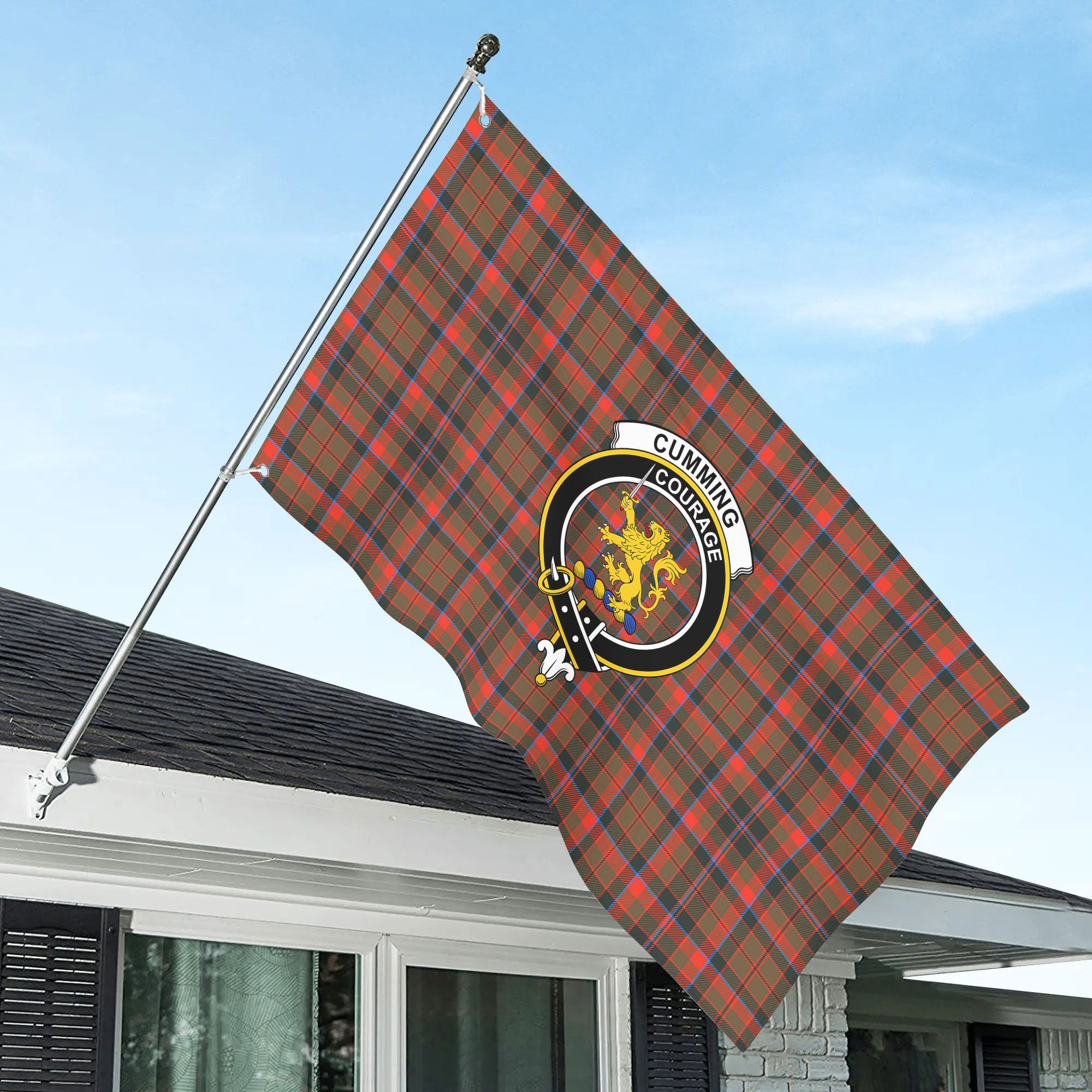Cumming Hunting Weathered Tartan Crest House Flag