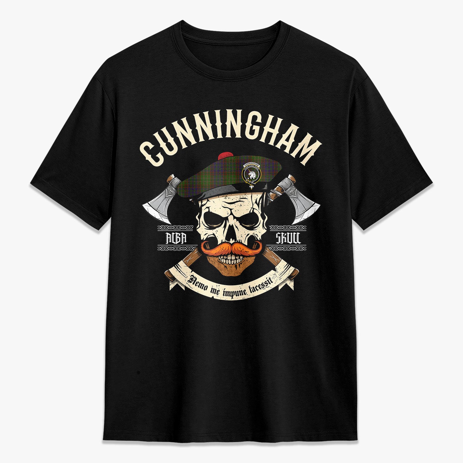 Cunningham Hunting Modern Tartan Crest 2D T-shirt - Alba Skull Style