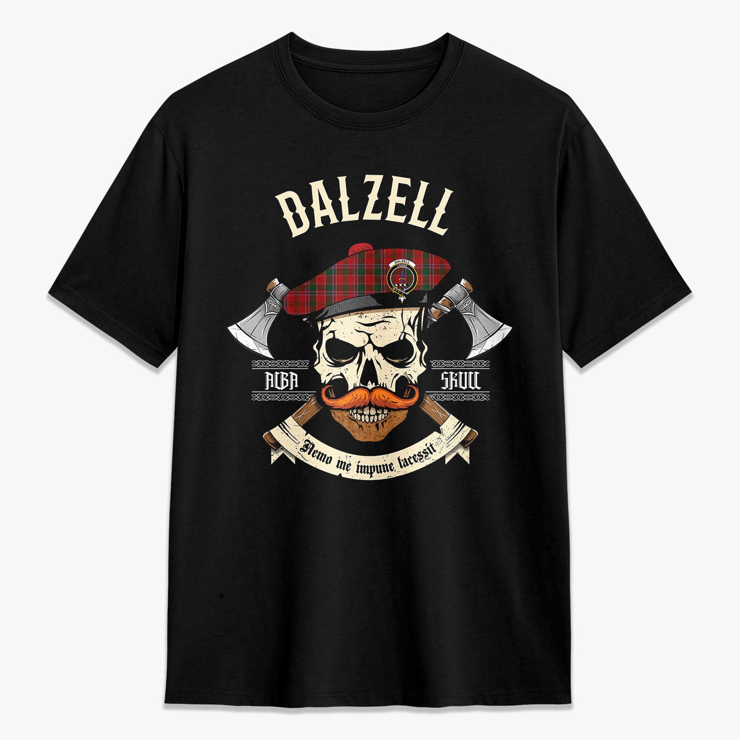 Dalzell Tartan Crest 2D T-shirt - Alba Skull Style,
