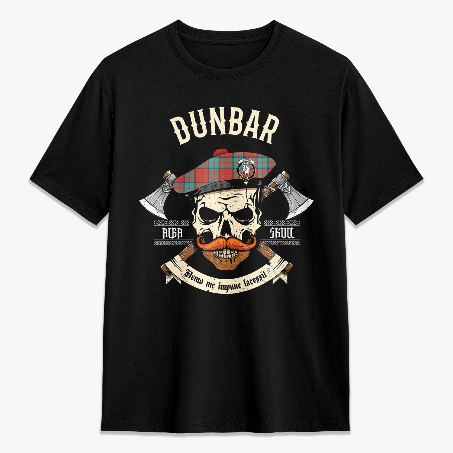 Dunbar Ancient Tartan Crest 2D T-shirt - Alba Skull Style,