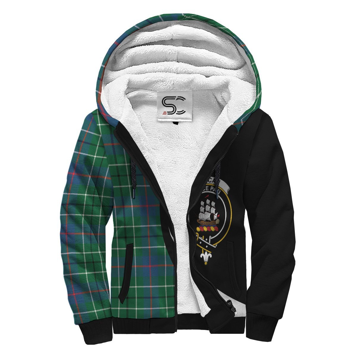 Duncan Ancient Tartan Crest Sherpa Hoodie - Circle Style