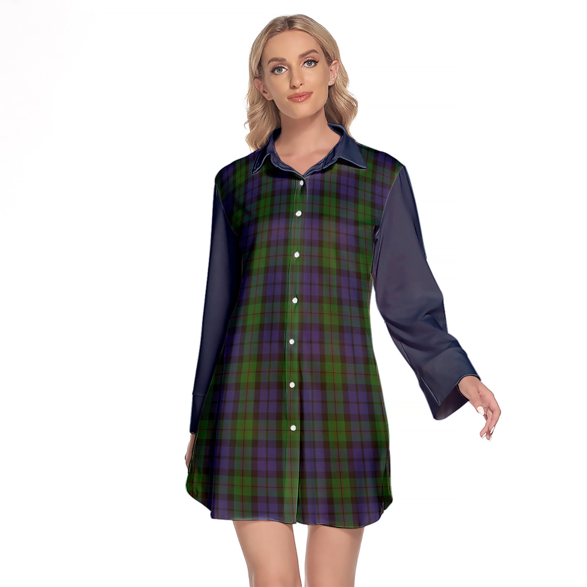 Dundas Tartan Women's Lapel Shirt Dress With Long Sleeve